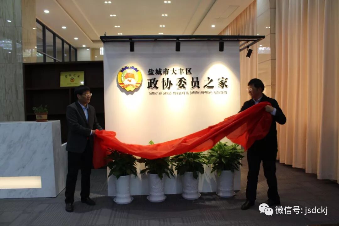大丰区政协副主席褚国栋、秘书长肖斌为委员之家揭牌。